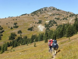 15 enthusiastic hikers arrived on July 31st for 3 full days of hiking in Cathedral Provincial Park near Keremeos. Two of the participants stayed in the lodge while the others camped at Quiniscoe Lake. The sites were first come first serve, so we were lucky to get an area together.